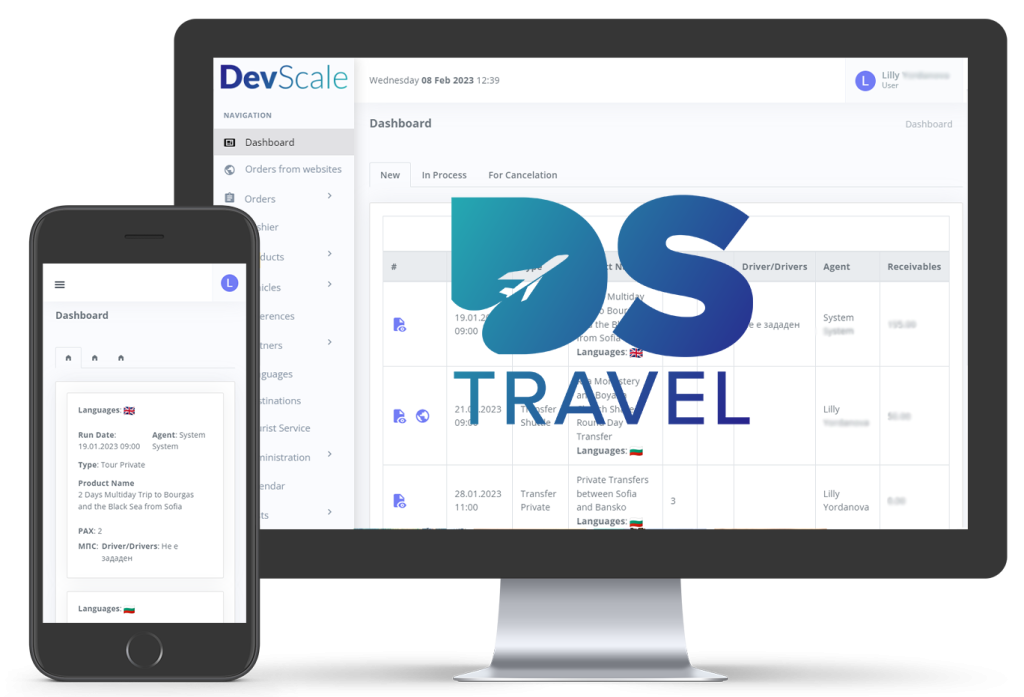 - DS Travel – уеб-базирано софтуерно решение за управление на туристически агенции, коeто автоматизира процеси, намалява оперативните разходи и подобрява ефективността на бизнеса. Системата подпомага управлението на резервациите и улеснява целия процес по създаване, обработка и завършване на продажбите. DS Travel елиминира нуждата от поддръжка на множество софтуерни системи, което улеснява работата на различните отдели и длъжности, и подобрява отчетността.