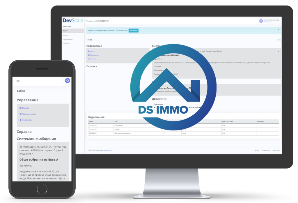 - DS Immo – модулна система за пропърти и фасилити мениджмънт, чиято основна цел е да улесни комуникацията между собственици, наематели и управителя на комплекса.