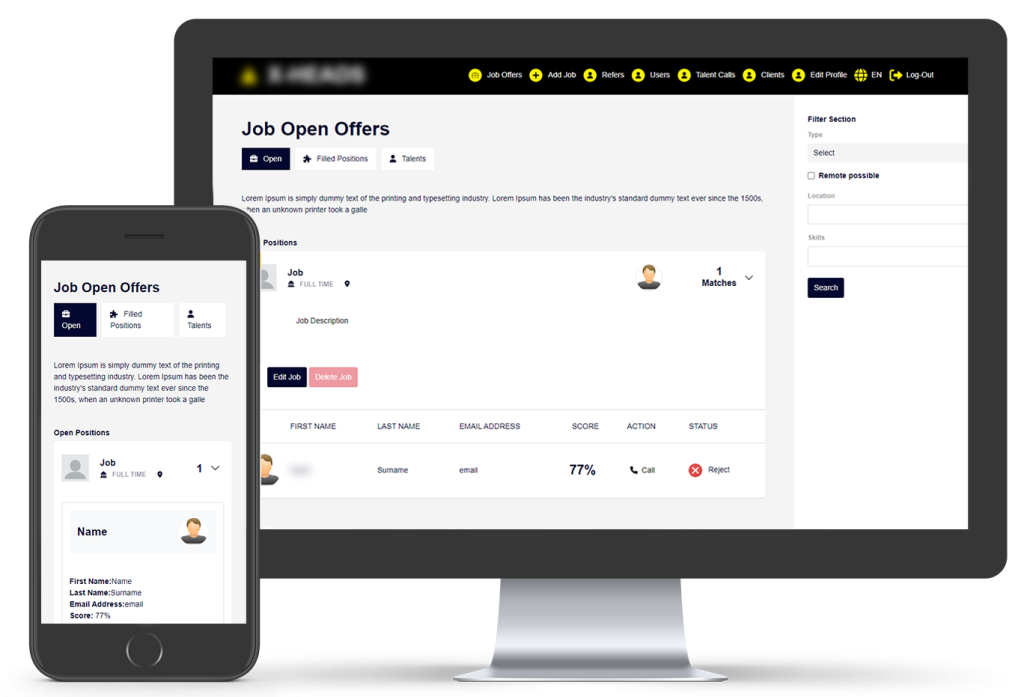 - Recruiters Platform – платформа за подбор на кадри, която автоматизира процесите по обявяване на позиции и подбор на кандидати. Системата е изградена изцяло съобразно изискванията и методиката на работа на клиента – рекрутърска агенция, оперираща в Германия.