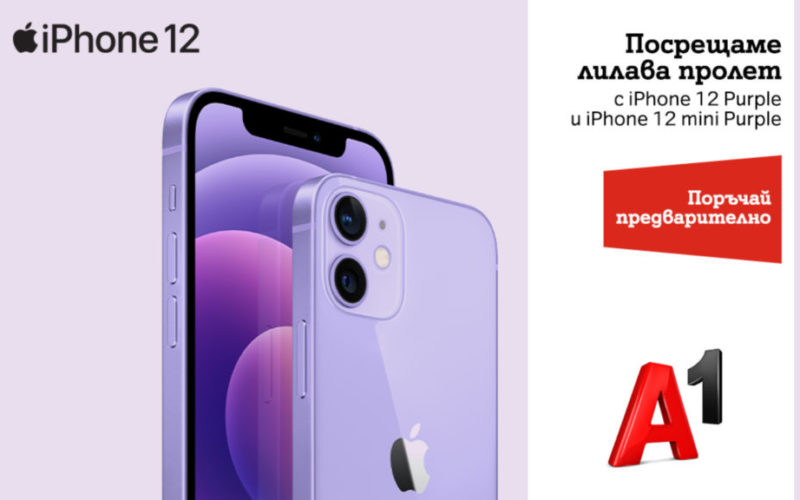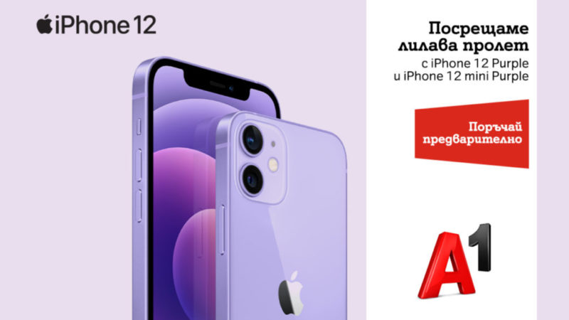 А1 ще приема предварителни поръчки в своя онлайн магазин за двата нови iPhone 12 и iPhone 12 mini в лилаво oт 15:00 часа днес. Моделите могат да бъдат поръчани предварително до 30 април, когато ще започнат и доставките на новите устройства. Телекомът ще предлага и двата смартфона в комплект с оригинален бърз адаптер за зареждане, който да допълни наличния в пакета USB Type C кабел.