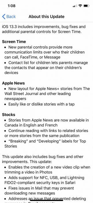 Заедно с поправките, вече е налична и нова опция за родителски контрол която се намира в “Screen Time” менюто, което позволява да контролирате на кого могат да се обаждат децата ви, изпращат съобщеня или с кого ползват FaceTime.