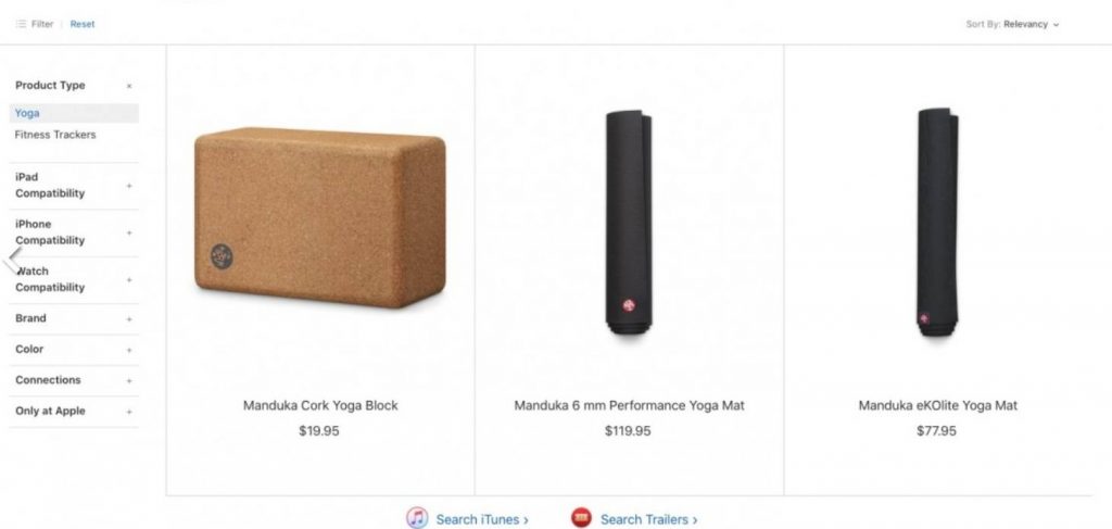 С реализацията на новата фитнес услуга Fitness +, Apple вече предлагат и фитнес аксесоари, като йога постелката Manduka Preformance Yoga за 120$, eKOlite за 78$ и Corck Yoga блок за 20$.