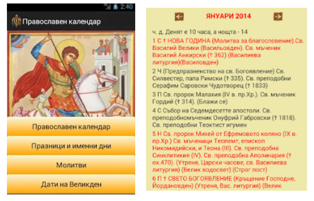 В Православния Календар е използвана информация от книжния вариант на Български Православен Календар за 2019 година от Българската Патриаршия. Ако харесвате това приложение моля направете дарение на БЪЛГАРСКАТА ПРАВОСЛАВНА ЦЪРКВА и/или си купете и Православния Календар на книжка, когато ползвате тази информация.