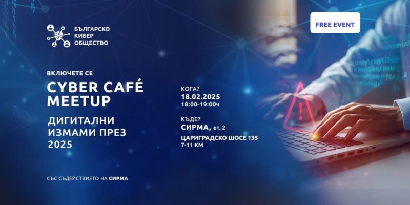 Българското киберобщество с радост кани всички специалисти от сферата на киберсигурността, както и хора с интерес към нея, на първото си събитие на живо за 2025 – Cyber Café.