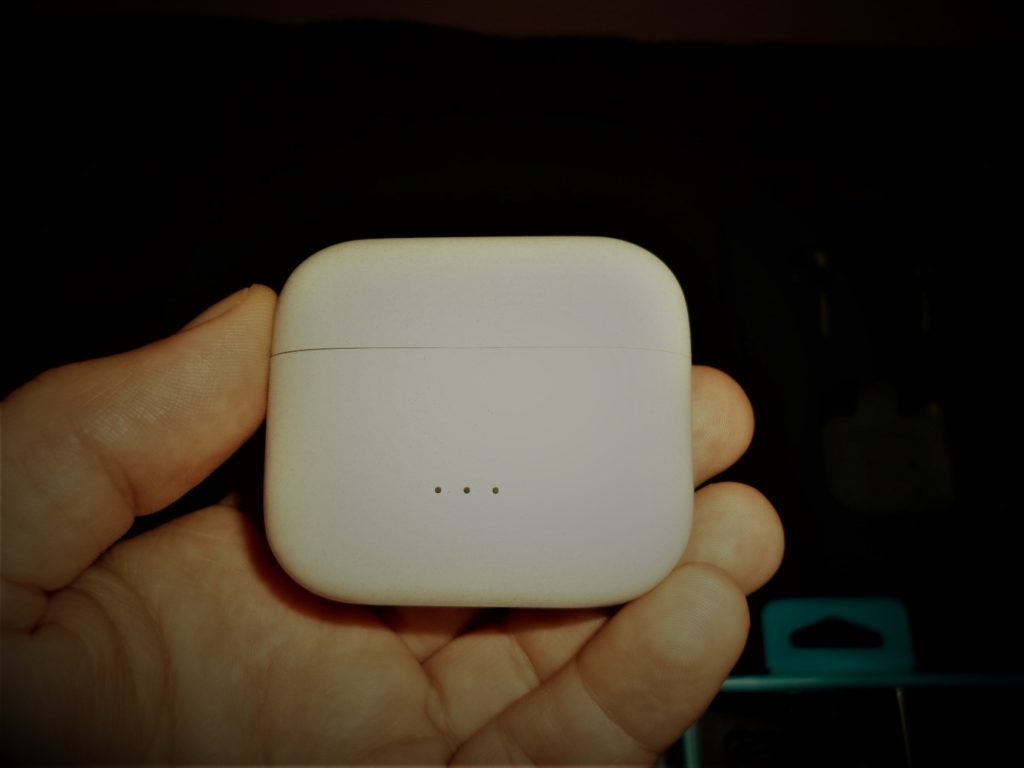 - Зарядната кутийка (кейсът) е компактна и влиза в джоба на панталона и якето без проблем. Широка е, но влиза и странично.