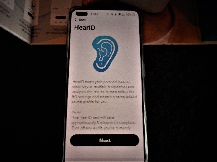 Но има и бонус HearID, персонализирана настройка след тест на ляво и дясно ухо. Изисква се стая без шум и детайлен слухов преглед от смартфона, после анализ и ухааа, започва индивидуално изживяване.