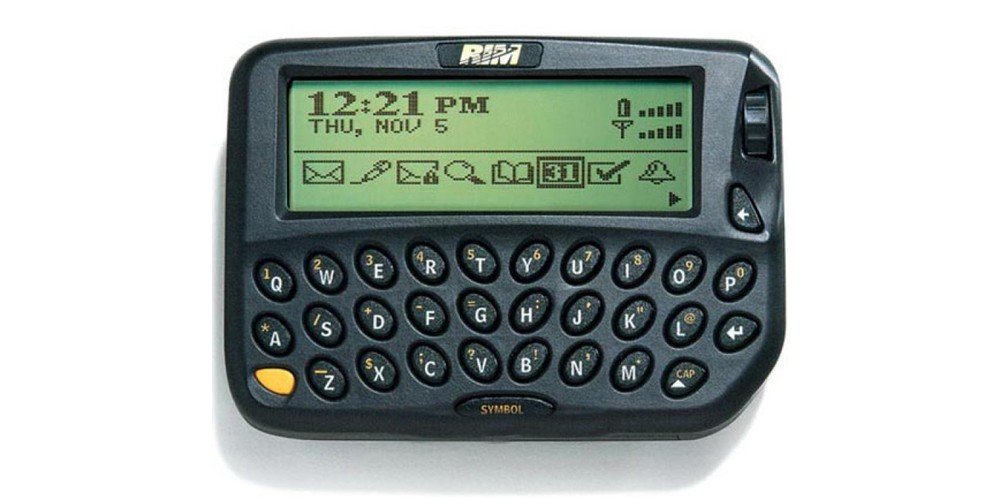 През 1999 г. RIM представят пейджъра BlackBerry 850. Името идва от приликата на клавишите на клавиатурата със зрънцата от плодовете на къпината. Устройството може да получава push имейли от Microsoft Exchange Server, чрез сървърния софтуер BlackBerry Enterprise Server (BES).