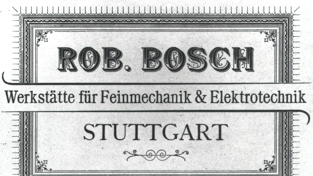 През ноември 1886 г. Роберт Бош се настанява в първата си работилница в западната част на Щутгарт с един калфа и едно момче за поръчки. За да могат клиентите да намерят работилницата, скрита във вътрешния двор, през 1890 г. Бош поставя фирмена табела.
