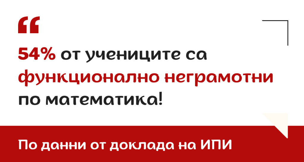 Сред тях се открояват ниските резултати на учениците и недостатъчното развитие на ключови умения, особено в областта на дигитализацията. 54% от учениците са функционално неграмотни по математика, а само 1/3 от населението покрива базовото ниво на дигитални умения, сочи анализът на ИПИ.