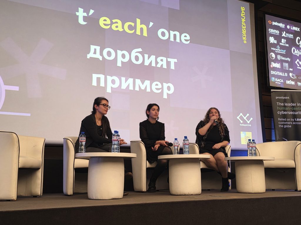 Димана, добре позната като съосновател на инициативата КиберЗнам, ни припомни, че макар и често да я свързваме с киберсигурността, е психолог по образование и още от 14-годишна възраст води обучения по онлайн безопасност.