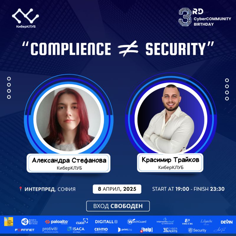 Провокативната и изключително актуална тема „Compliance is not Security“ ще бъде разгърната по интересен и интригуващ начин от Александра Стефанова и Красимир Трайков – добре познати на общността ни с практическия си опит и способността да превръщат сложни концепции в разбираеми послания.