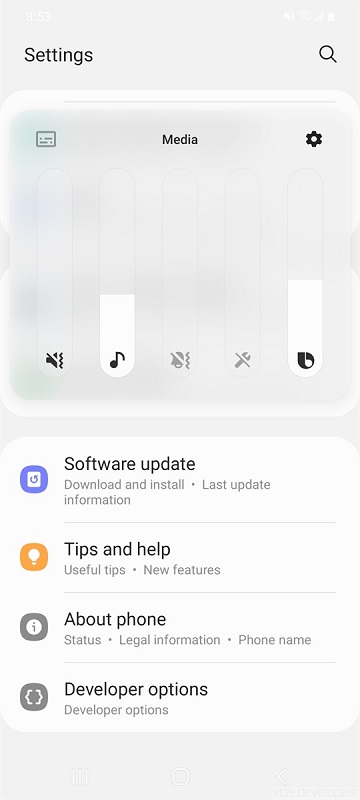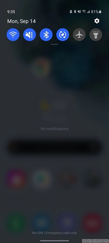 Първата промяна която забелязваме в бетата на One UI 3.0 е новият дизайн на менюто с бързите настройки – “Quick Settings”. Тук виждаме, че компанията е решила да използва замъглен ефект тип “blur”. Тук ще вметна, че това и до сега беше възможно чрез Good Look. Виждаме и промяна на местоположението на менюто за медия и устройства.