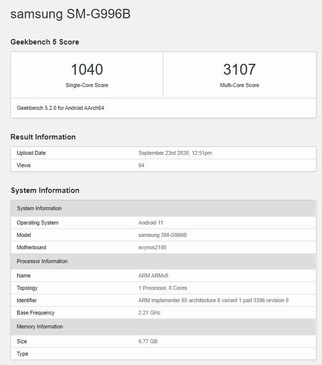 С наближаване на очакваните премиери, изтича все повече информация за съперничещите си чипсети. Преди два месеца бе публикуван GeekBench резултат на Exynos 2100 с Galaxy S21 Ultra, а вчера Snapdragon 875 го надскочи в нов Geekbench тест.