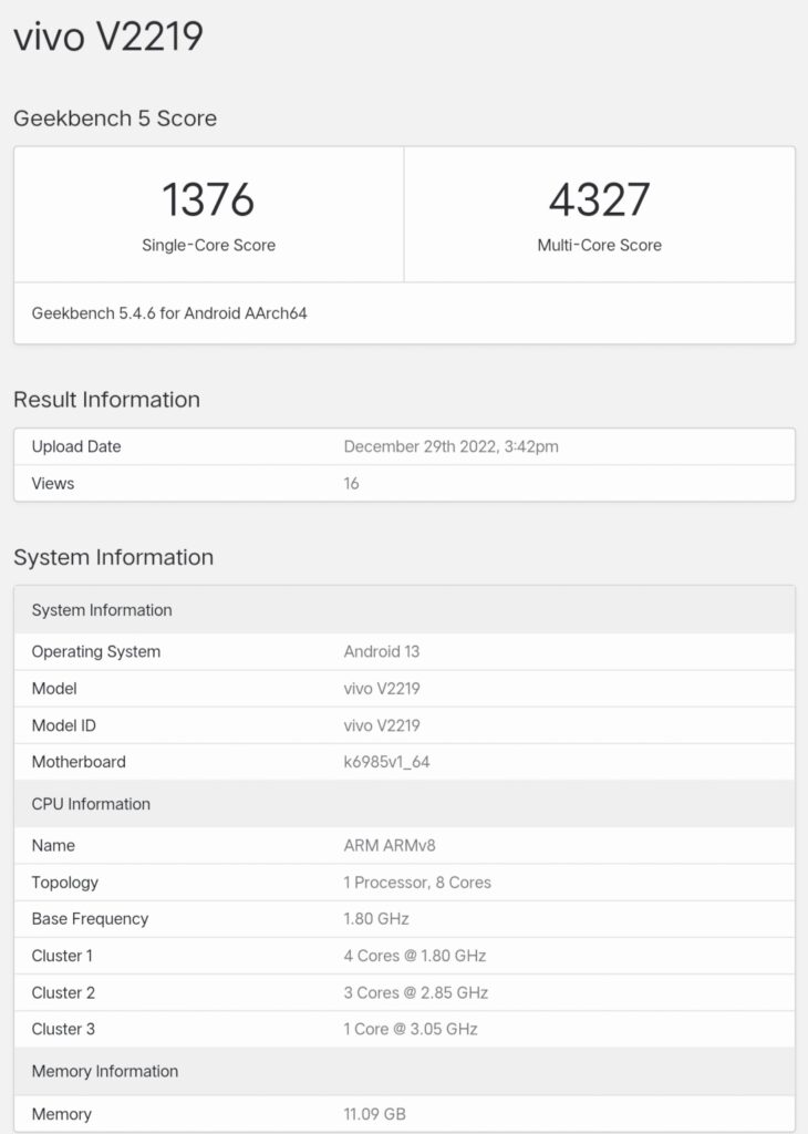 Глобалният вариант на Vivo X90 Pro се появи в Geekbench, с номер на модела V2219. Смартфонът постига 1376 точки в едноядрен и 4327 точки в многоядрения тест, а от информацията става ясно, че се задвижва от 8-ядрен процесор с конфигурация на ядрата 1+3+4 и тактова честота на високопроизводителното ядро – 3.05GHz.