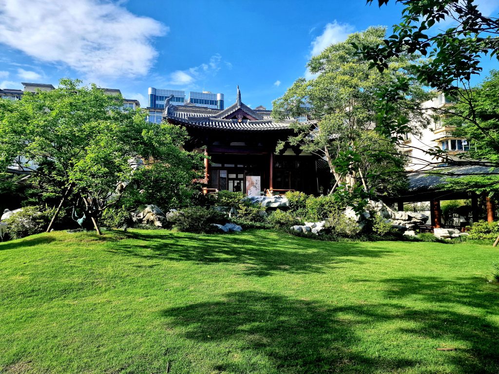 Модерната архитектура в Ханджоу впечатлява с умелото вписване в пейзажа, а не с агресивна демонстрация.