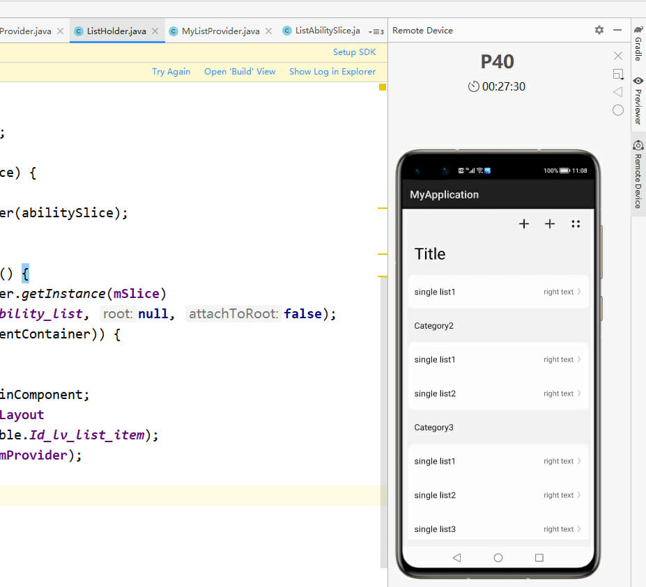 На пръв поглед тези примерни екранни снимки показват, че Harmony OS изглежда почти като EMUI 11, базиран на Android. Спред документите за разработчици, приложенията са кодирани в Java, а оформлението е в XML файлове, както при Android.
