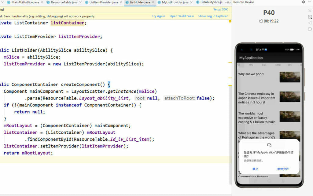 - Предоставя на разработчиците над 40 примерни кода, за да разучат бързо HarmonyOS, интерфейса на системата и методите на разработване.