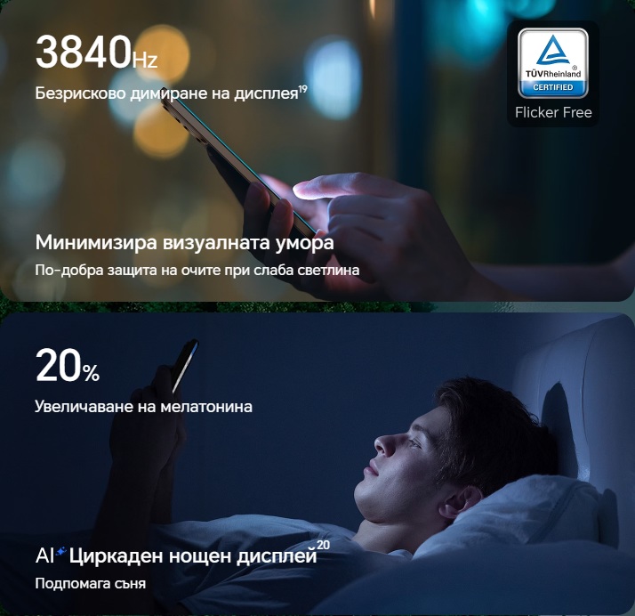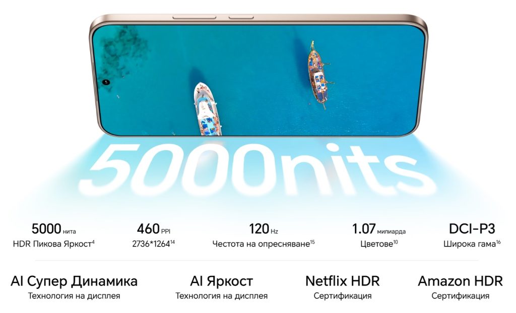 - ултра ярък 5000-нитов дисплей с грижа за очите,