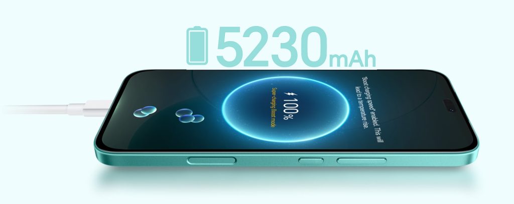 HONOR 400 Lite е оборудван с батерия с капацитет 5230 mAh и поддържа 35W кабелно HONOR SuperCharge зареждане, с което може да се зареди до 52% само за 30 минути и да достигне 100% само след 73 минути.