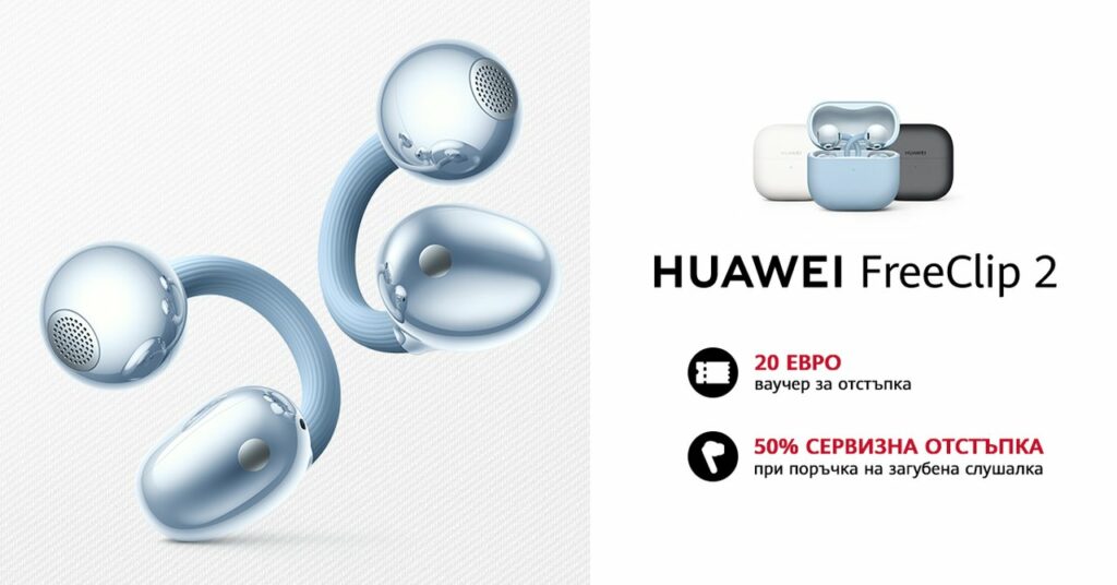 HUAWEI FreeClip 2 с 20 евро отстъпка до 1 март 2026