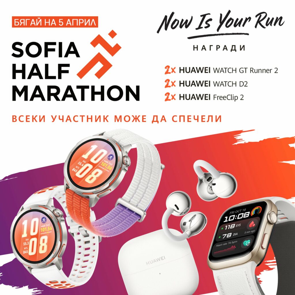 Huawei обявява партньорството си със Sofia Half Marathon 2026, организиран от Спортен клуб „Бегач“, който ще се проведе на 5 април със старт при храм-паметника „Св. Александър Невски“ по сертифицирани трасета от World Athletics.