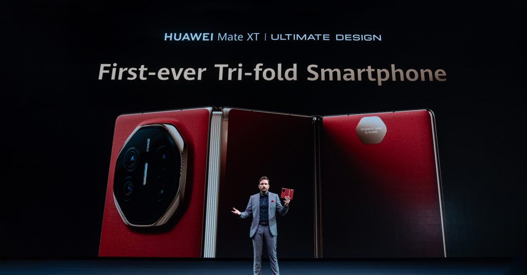 На представянето на иновативните продукти на HUAWEI в Куала Лумпур (Малайзия) бе показан HUAWEI Mate XT | ULTIMATE DESIGN –първият в света тройно сгъваем смартфон за масовия пазар.