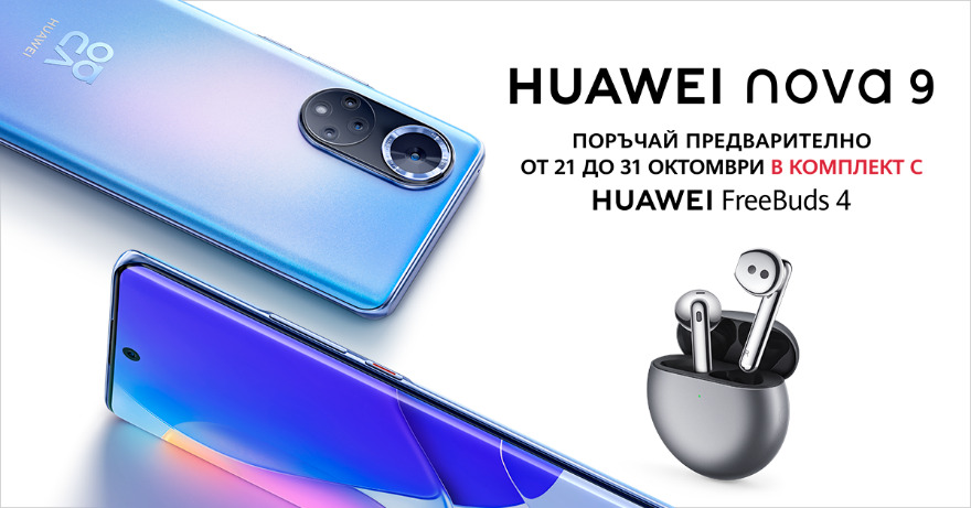 - Предварителни поръчки на HUAWEI nova 9 с подарък Huawei FreeBuds 4