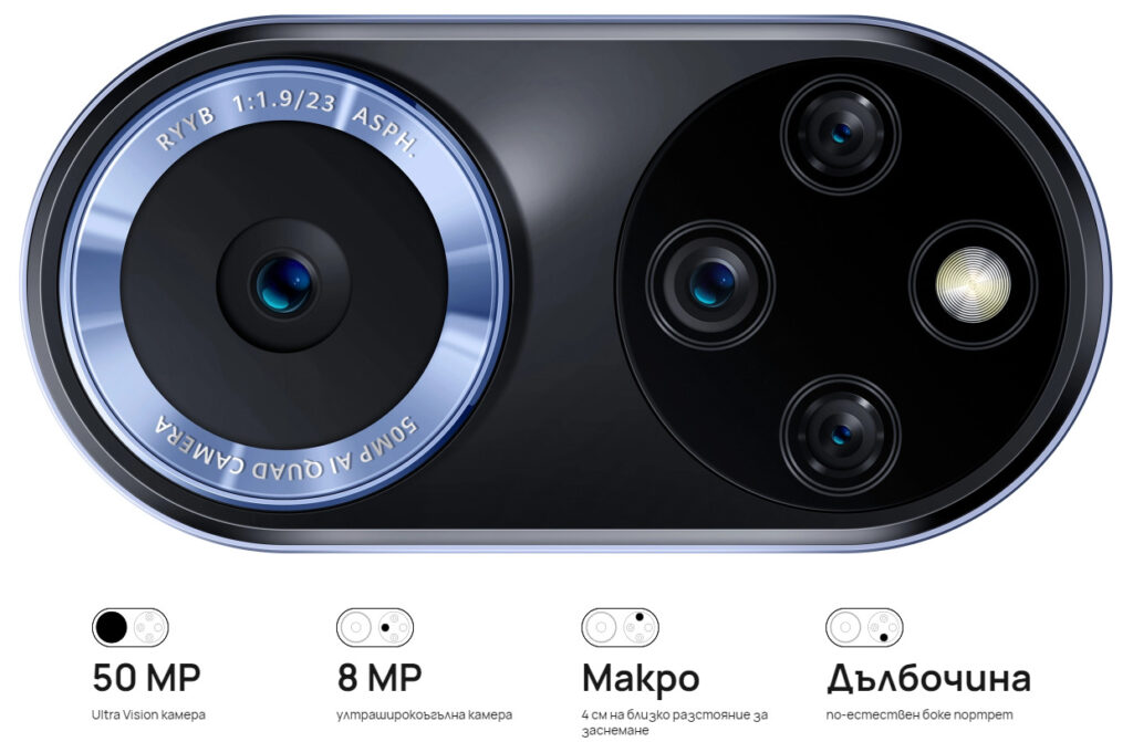 | Основна камера | 50 MP, f/1.9, 23mm (wide), PDAF 8 MP, f/2.2, (ultrawide) 2 MP, f/2.4, (depth) 2 MP, f/2.4, (macro) LED flash, panorama, HDR |