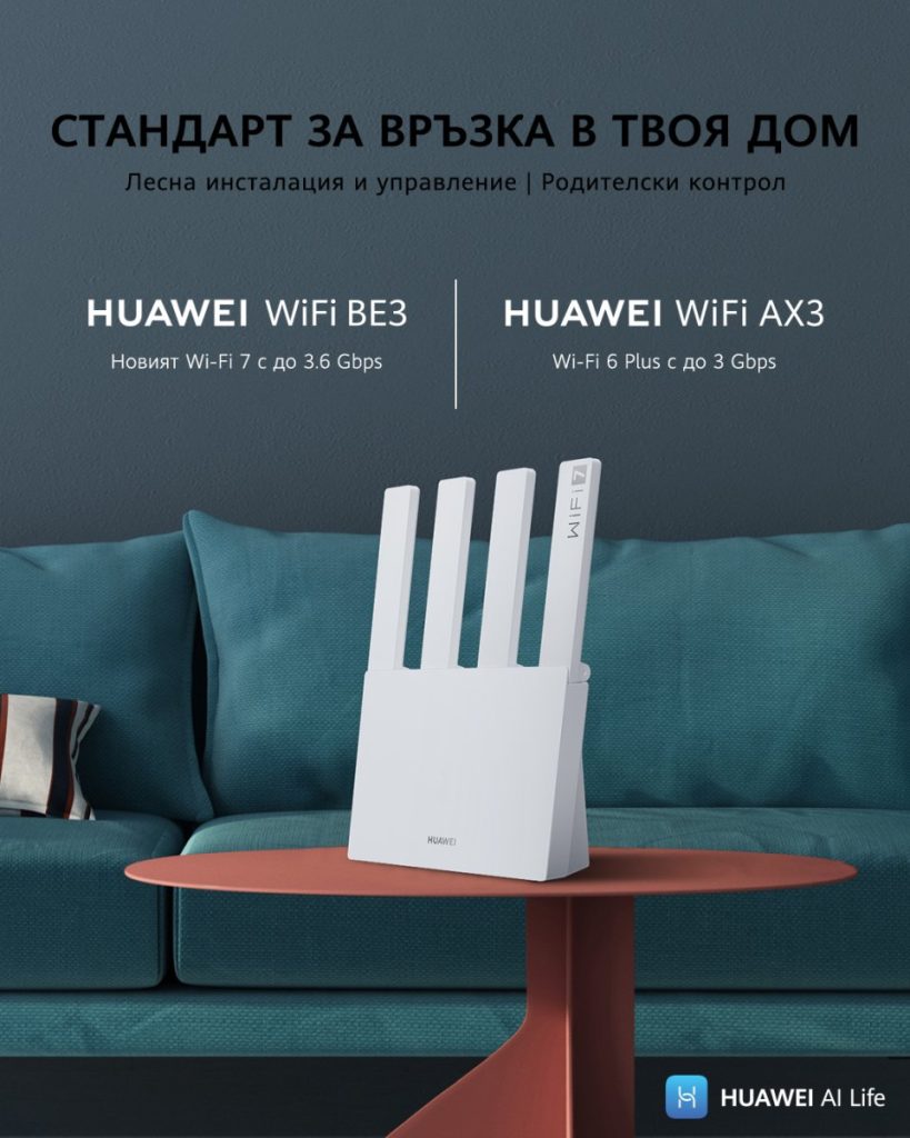 Рутерите HUAWEI са създадени с мисъл за потребителя и предлагат изключително лесна инсталация в три стъпки, изпълними от всеки, който използва смартфон. Устройствата HUAWEI AX1, AX2, AX3 и BE3 вече се предлагат в търговската мрежа на „Технополис“ с 24-месечна гаранция.