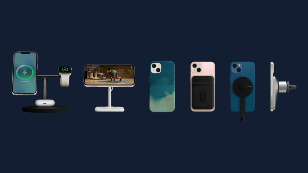 За самртфоните iPhone се предлага голямо разнообразие на аксесоари, както от Apple, така и от трети страни – зарядни устройства, стойки за автомобили, MagSafe и др.