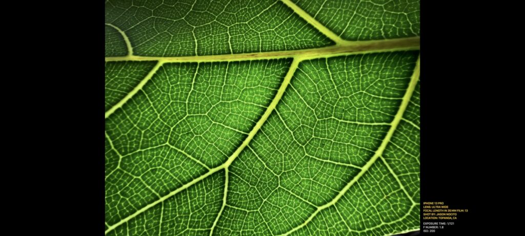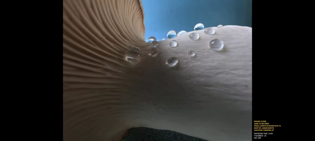 Ултраширокоъгълната камера дава възможност за заснемане на макро снимки с iPhone 13 Pro и iPhone 13 Pro Max. За макро фотографията обичайно се използва специален обектив, но новият дизайн на ултраширокоъгълната камера и системата за автоматично фокусиране позволяват изключително остър фокус от разстояние само 2 см.