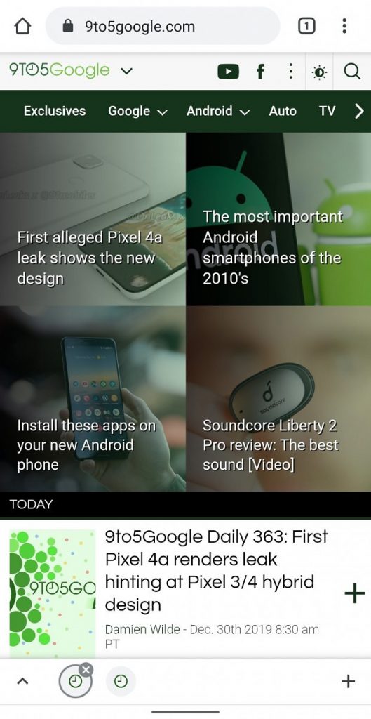 Нов флаг на Chrome позволява на потребителите да добавят лента с раздели отдолу в Chrome за Android. Този флаг активира лента в долната част на браузъра, в която под дормата на кръгове с фавикона на сайта имате пряк достъп до отвоените раздели. Достатъчно е докоснете избрана икона, за да се зареди съответния раздел. От там могат и да се затварят