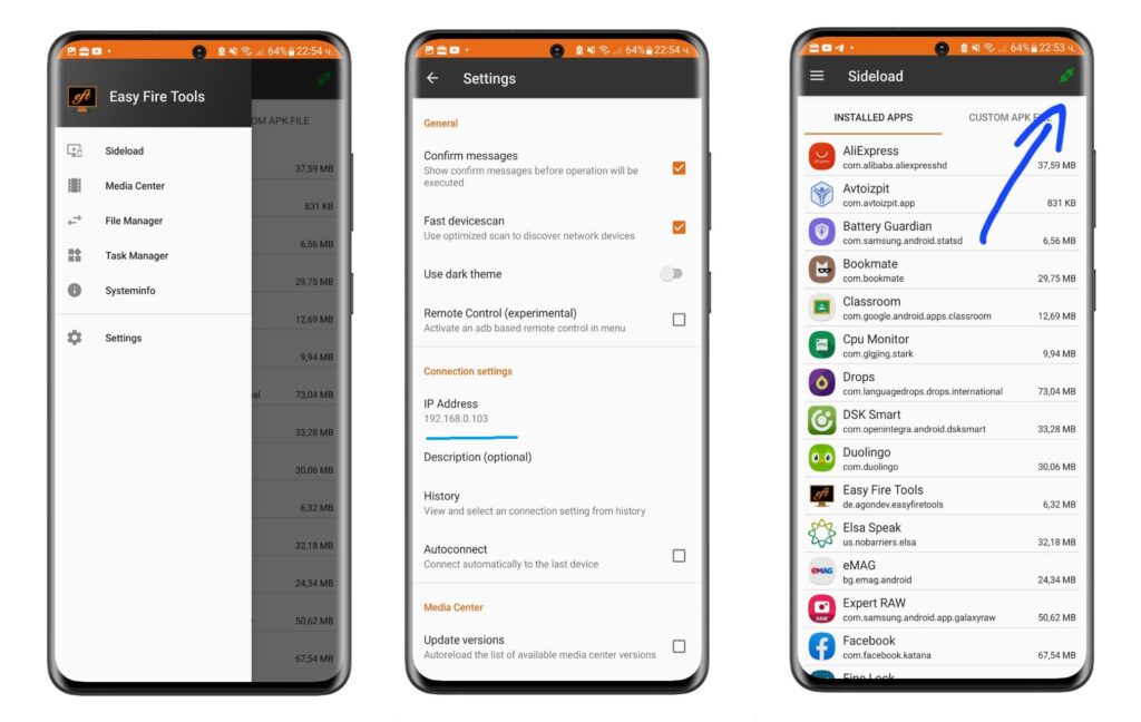 Инсталирането на циферблатите се осъществява през ADB Wireless връзка с помощта на Easy Fire Tools. За тази процедура не ни е нужен компютър.