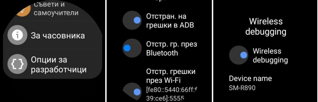 - Важно! Часовника и телефона трябва да са свързани към една и съща Wi-Fi мрежа. Също така е важно да изключите опциите ADB Debugging и Wi-Fi Debugging тъй като консумират много енергия.