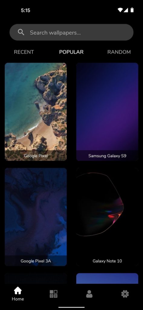 Когато отворите приложението, ще бъдете в раздела Скорошни. Това показва най-новите тапети, обикновено от най-новите телефони. Но ако просто искате да намерите нещо, което харесвате, а не тапети на конкретен телефон, можете да преминете към раздела Популярни.