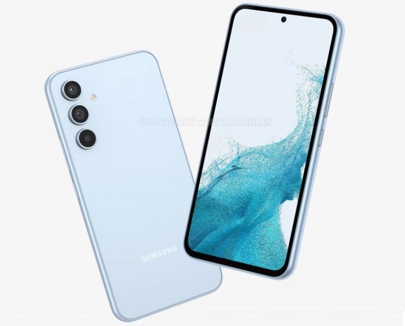 Благодарение на популярния @OnLeaks, вече знаем как ще изглежда Galaxy A54. От изображенията виждаме прилика с Galaxy A53 в предната част. Предната камера отново ще е позиционирана в дисплея, тип „пънч-хоул“.