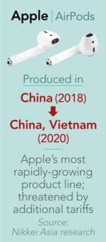 Технологичните компании, особено като доставчиците на Apple, обмислят преместването на 15% до 30% от общата им продукция от Китай – дял, еквивалентен на техните доставки за САЩ, и помолиха своите азиатски доставчици да помогнат за улесняване на плановете за диверсификация през следващия няколко години.