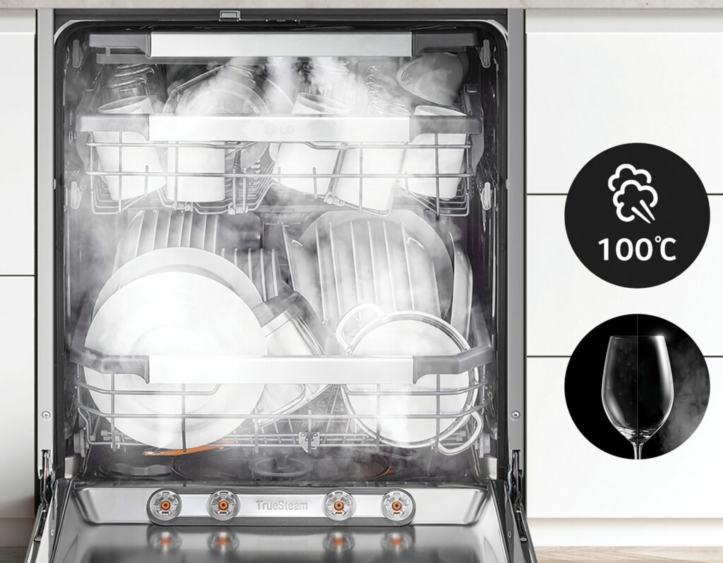 Съдомиялната с QuadWash технология използва четири разпръскващи рамена, които достигат до всички ъгли. TrueSteam технологията добавя гореща пара, която осигурява безупречна чистота и дезинфекция. Smart Rack+ позволява гъвкаво подреждане, а автоматичното отваряне на вратата в края на цикъла подобрява изсушаването. Енергийният клас А допринася за по-ниска консумация и по-устойчиво потребление.