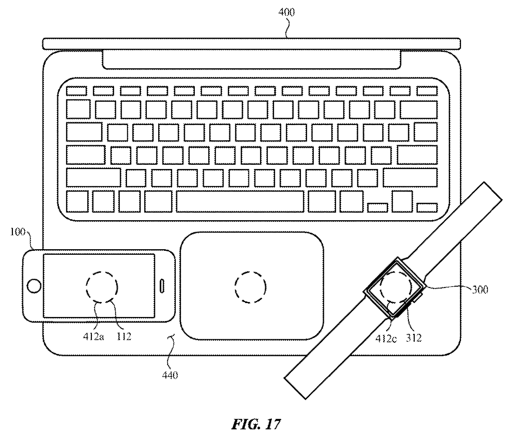 На предоставените чертежи се виждат намотки за индукционно зареждане на различни места – на тракпада и капака на MacBook, чрез които безжично да се зареждат устройства на компанията.