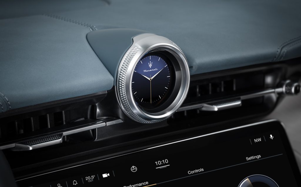 Емблематичният часовник на централното табло е вече дигитален и може да се конфигурира в три облика (Classic, Design и Sport). Може също да служи като компас, уред за измерване на странично ускорение и хронометър. Чрез него клиентите могат да задействат и гласовия асистент с обръщението “Hey Maserati” – това дава възможност за управление на климатика, мултимедията, навигацията и телефона.