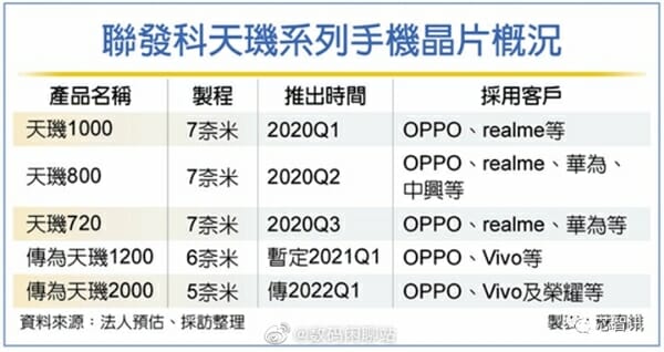 Според картата, премиерата на Dimensity 1200, ще се състои през “първото тримесечие на тази година” ( вероятна датa 20-ти януари). Чипсетът ще се използва в смартфони на Oppo, Vivo и Xiaomi, чиито модел Redmi K40, също ще е базиран този чип.