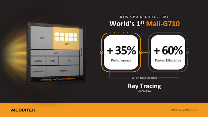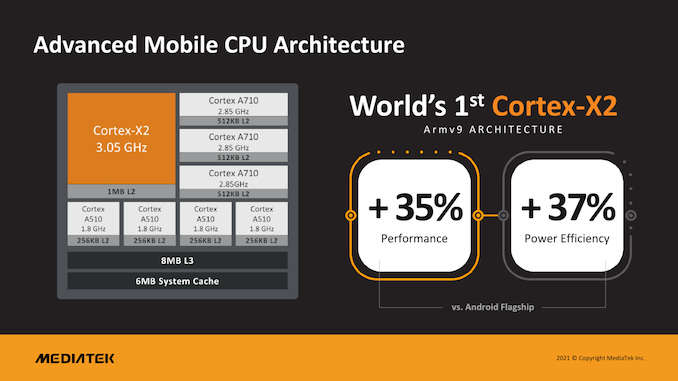MediaTek твърдят, че това осигурява с 35% по-добра производителност и 37% по-добра енергийна ефективност от „конкурентен чипсет“, за който се предполага, че е Snapdragon 888.