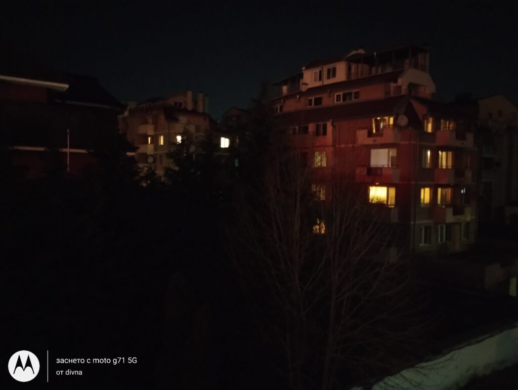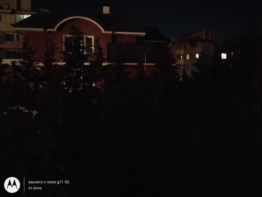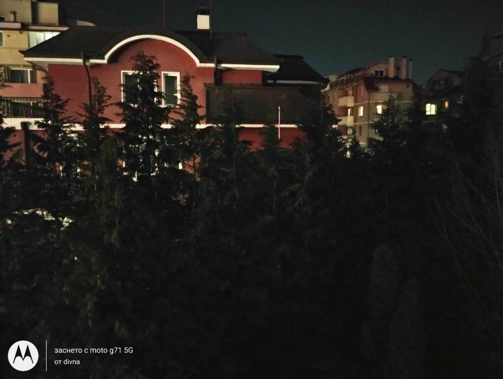 А ето и снимки, направени с Motorola moto g31. Първата е през нощта на авто, втората е през нощта на нощен режим, а третата през деня на авто.