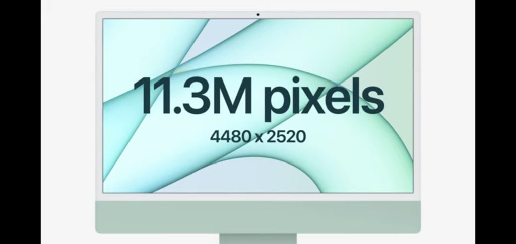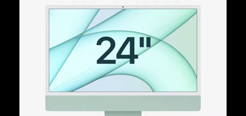 Apple представиха новия си iMac 2021 – all-in-one декстоп компютър с ARM-базирания чипсет M1 и 4,5К 24″ дисплей на събитието на 20 април 2021г., заедно с новия iPad Pro със същия M1 чипсет, тракерa AirTag и iPhone 12 в лилаво.