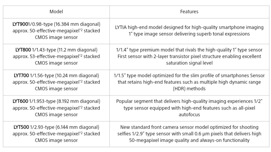 Водещият сензор, пуснат от японската компания под тази марка, е моделът LYT900. Това е 50MP сензор с размер от почти 1 инч по диагонал и пиксели, разположени на два слоя. Няма съмнение, че Sony ще предложат и останалите сензори в портфолиото LYTIA за по-достъпните устройства на Oppo, или за тези от високия среден клас от серията Reno.