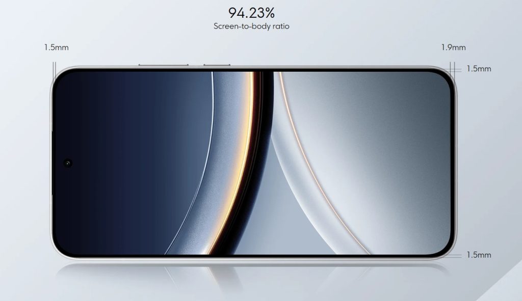 Дисплеят е с минимални рамки, като съотношението на екрана към тялото е 94,23%, което засилва усещането за потапяне и визуален поток. В допълнение към това, извивките с голям радиус подобряват ергономичността, предлагайки плавен и удобен захват.