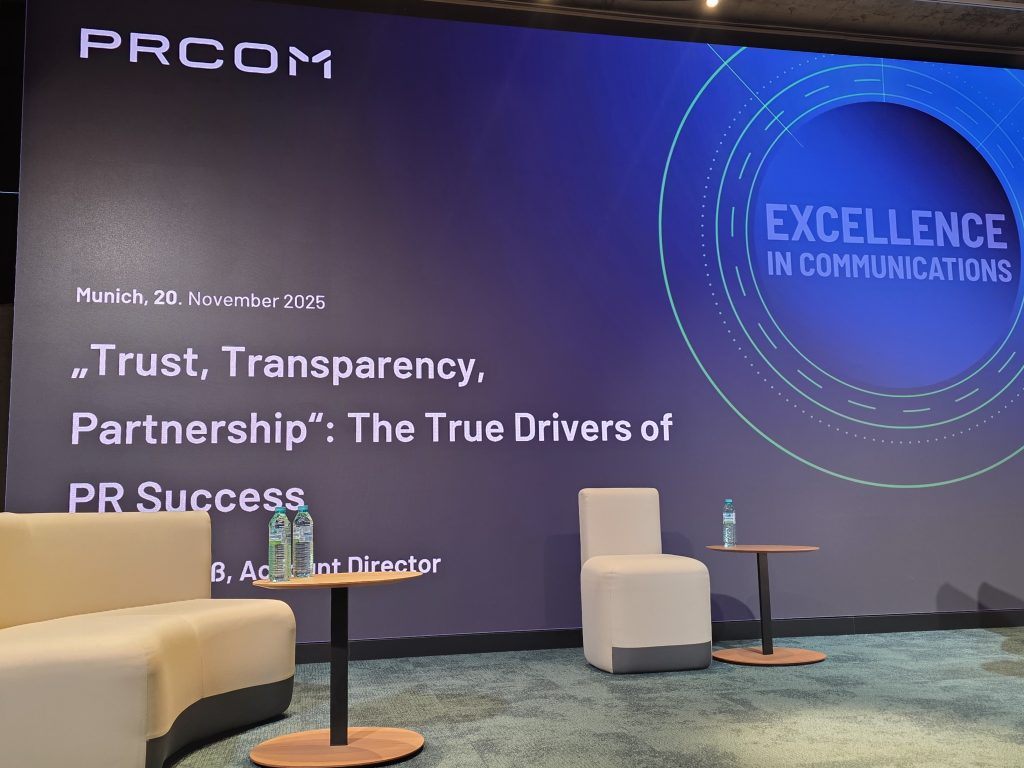 Привилегията да презентира първа имаше Андрея Грос (PRCOM, Германия). От позицията на своя дългогодишен опит тя сподели, че истинският успех на PR-а не се измерва само в кампании, KPI или медийни публикации, а в дългосрочни партньорства, доверие и посланичество, които стройно се изграждат с години.
