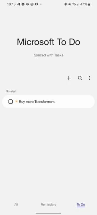 След като се инсталира новата версия на Reminders, опцията за синхронизиране ще се появи веднага след отваряне на приложението. След като влезете в акаунта си в Microsoft и дадете нужните разрешения, ще бъдете попитани кой списък от Microsoft To Do желаете да се синхронизира със Samsung Reminders, тъй като може да се избере само един. За момента изображенията в Reminders не могат да бъдат синхронизирани с Microsoft To Do.