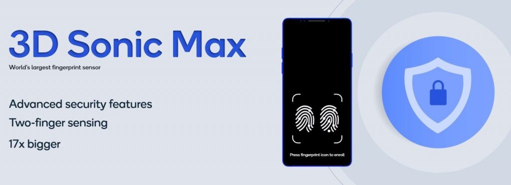 Респективно по-големият сензор получава повече информация, за да направи сигурна идентификация. Площта, на която оперира новият 3D Sonic Max scanner е 20мм x 30мм или 600 кв.мм. Така драстично намаляват и шансовете да бъде подлъган до 1 на милион, колкото е и при Apple Face ID.