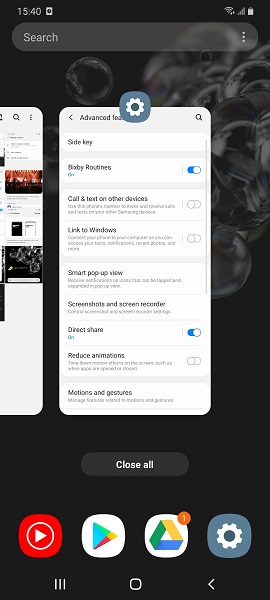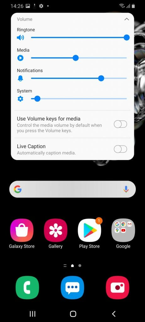 Samsung са помислили и за слайдера за звука. Той вече е премесетен и се намира от дясната страна на екрана, точно до бутоните за звука. Така е много по-удачно от преди. Менюто вече разполага с повече опции и има нов замъглен ефект, както и при менютата за известия и бързи настройки.